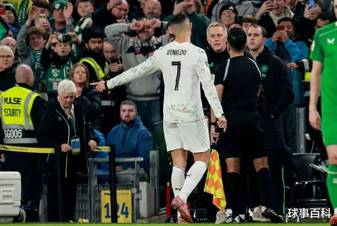 然而,比赛开始后,嘘声依旧如预期而来,而C罗在比赛中的肘击行为则让他陷入了更大的尴尬。当时,C罗在一次争抢头球的过程中,肘击了爱尔兰球员,随后他还做出了一种假装哭泣的手势。主裁判在回看了视频回放后,决定将C罗直接红牌罚下。