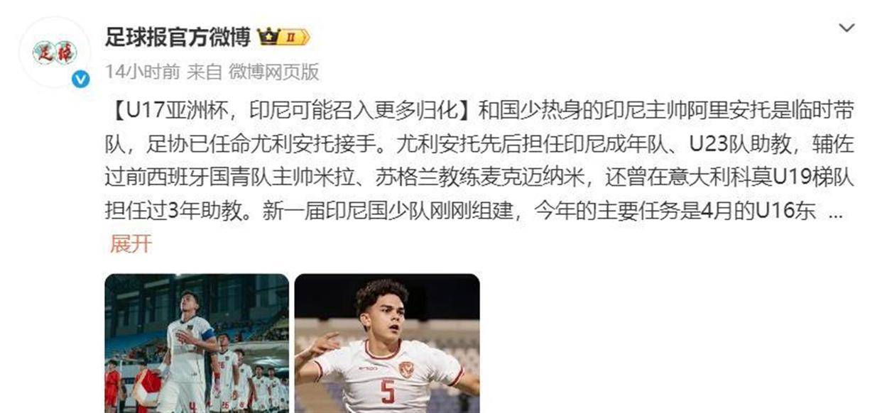抽签结果带来的热议尚未平息,印尼足协的紧急应对措施已经公之于众。 据《足球报》2月13日报道,指挥热身赛的临时主帅阿里安托已被撤换。 印尼足协正式任命尤利安托为新任U17国家队主教练。