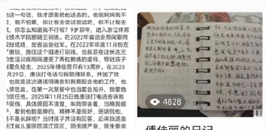 10岁就在省运会夺冠,教练当初抢着要她,夸她“天赋好、肯吃苦、未来可期”。妈妈手机里存满了女儿的训练视频,每一次翻跟头、每一次落地,都闪着梦想的光。一切在她被调到唐琰、施佳两位教练手下后,彻底变了。