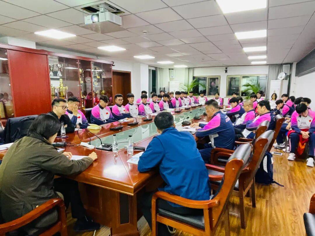 张萱领队在会上就此次亚青会团部的各项纪律要求和规定向大家做了详细的讲解和要求,希望大家严格遵守各项管理规定,做好各项准备工作,认真对待每一场比赛和每一次交流,实现竞技体育和精神文明双丰收,为体育强国建设贡献手球人的青春力量。