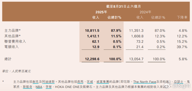 根据滔搏披露的2025/26财年第三季度运营数据,2025年9-11月,公司零售及批发总销售额同比录得高单位数下跌;2025/26上半财年,滔搏总收入同比下降5.8%至122.99亿元,四大板块收入全线下挫。